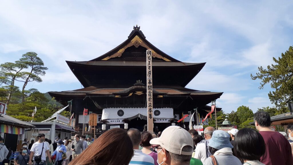 特急「信州」を長野駅で下車後、御開帳真っ只中の善光寺を訪問。この時は既に午後4時くらいであったが、数多くの参拝客で賑わいを見せていた。