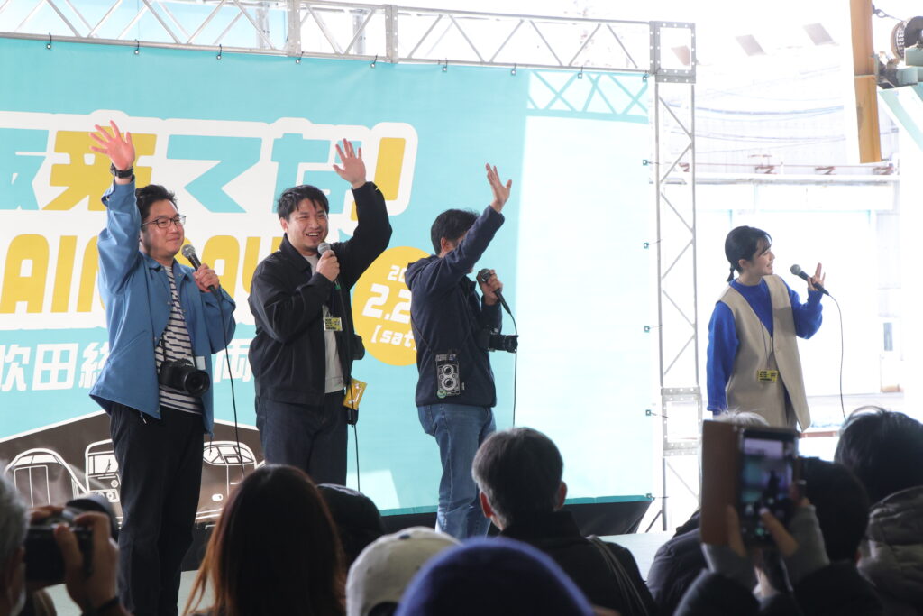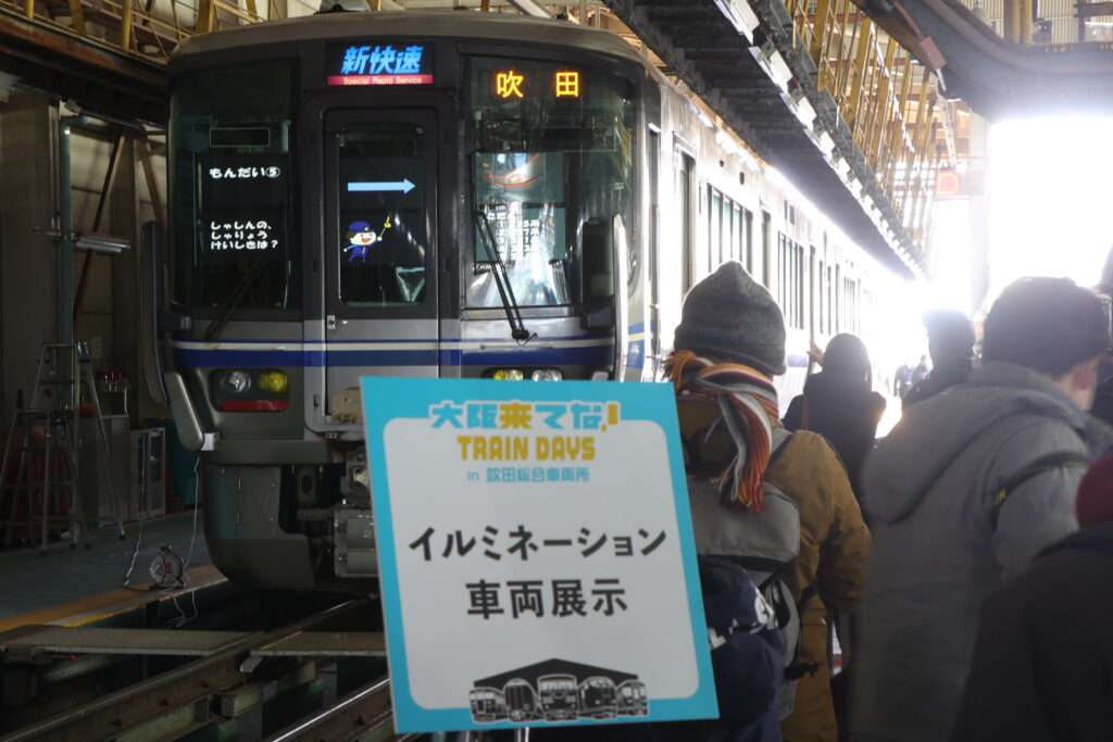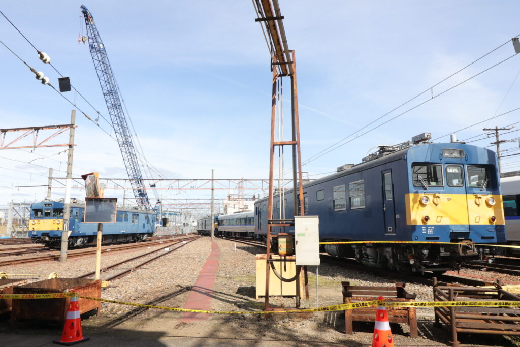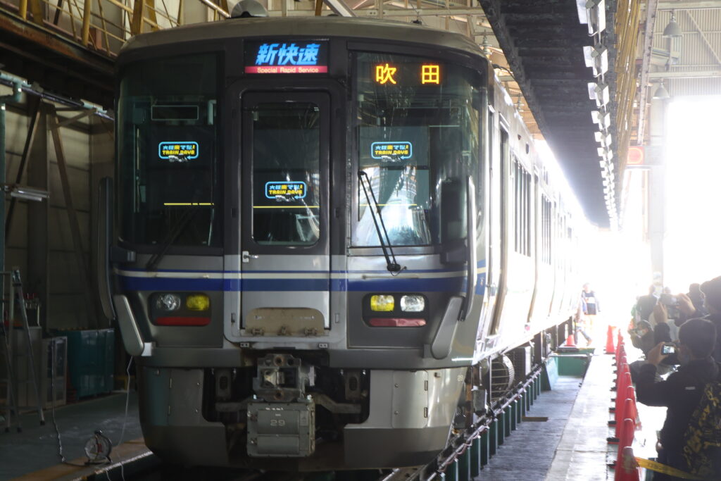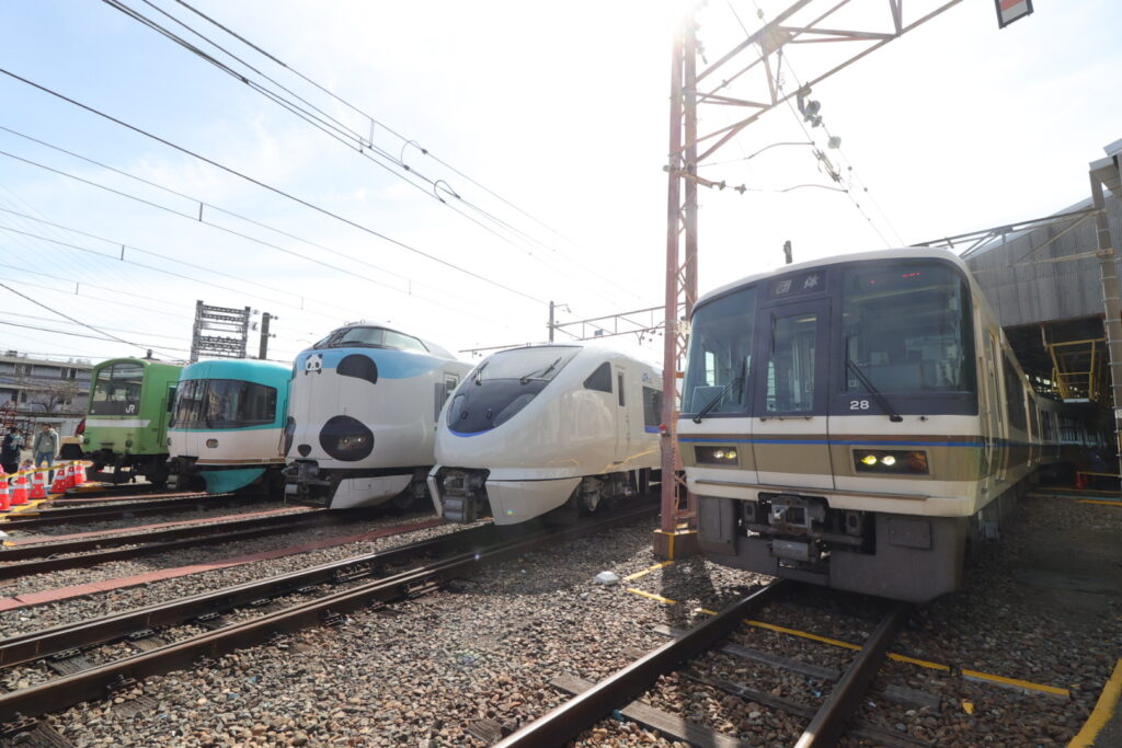 JR西日本吹田総合車両所では大阪来てなキャンペーンの一環として公開イベントが開催された。イベントでは、クモヤ145系が3編成並ぶ貴重な瞬間を見ることができました。奥の重連しているクモヤの後ろにはサンダーバードが連結されていました。普段見ることのできない車両所での作業や検査体験、車両の展示から、トークイベントや鉄道写真家の方々の貴重な写真展示、鉄道デジタルコンテンツの限定ノベルティの販売などが実施された。1万人の応募で2600人が当選し倍率は約4倍。イベントに大阪から参加し当選した男性は「今回のイベントには鉄道が好きで応募した。天気もよく貴重な列車の数々を見れてよかった」と話していました。